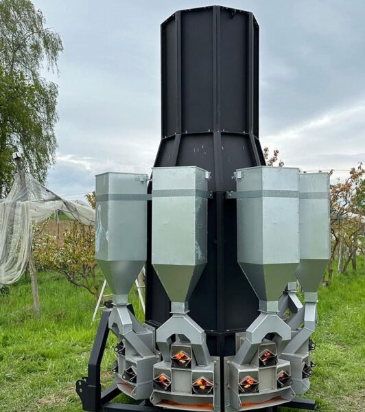 Les brûleurs AgroFrost, également appelés boosters, sont conçus pour compléter l’action des tours antigel dans les conditions les plus critiques, notamment lors des gelées noires ou lorsque la couche d’inversion thermique est insuffisante.